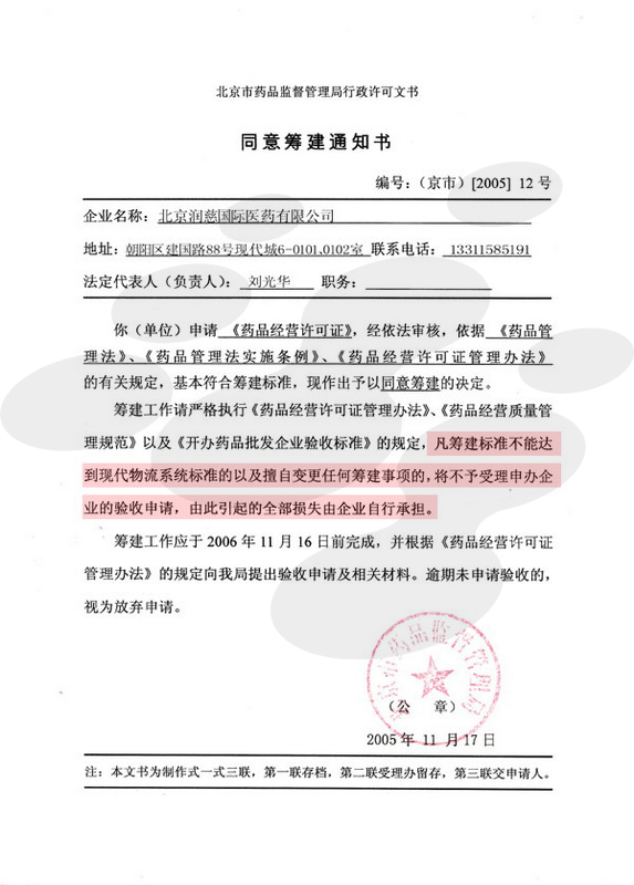 Issuing Authority:Beijing Drug Administration