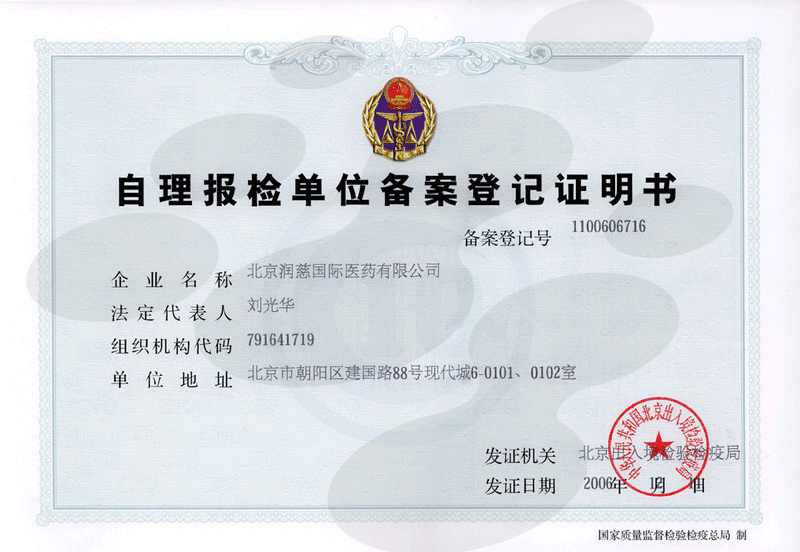 Issuing Authority :Bureau of Quality and Technical Supervision of Chaoyang District, Beijing