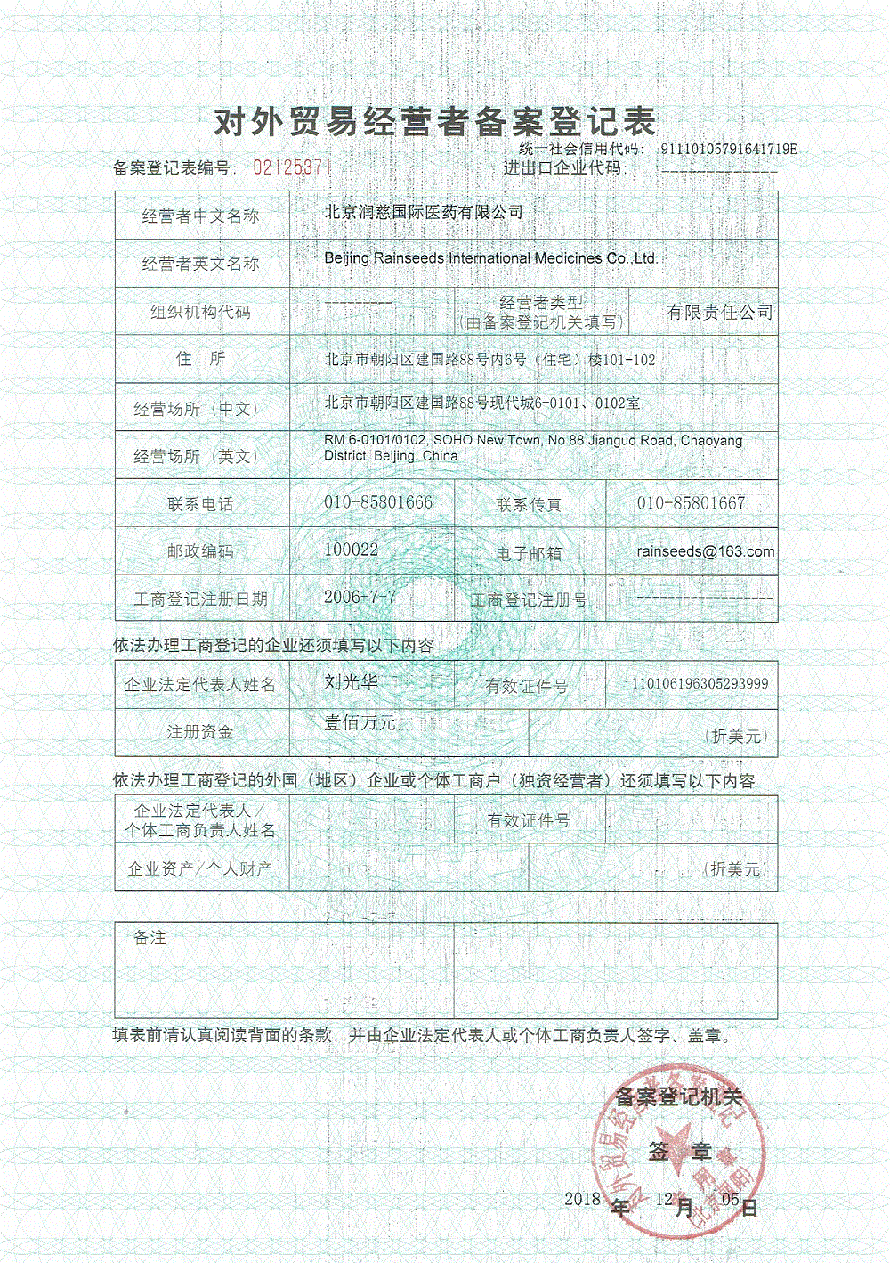 Issuing Authority :Chaoyang District Branch of the Beijing Municipal Administration of Industry and Commerce