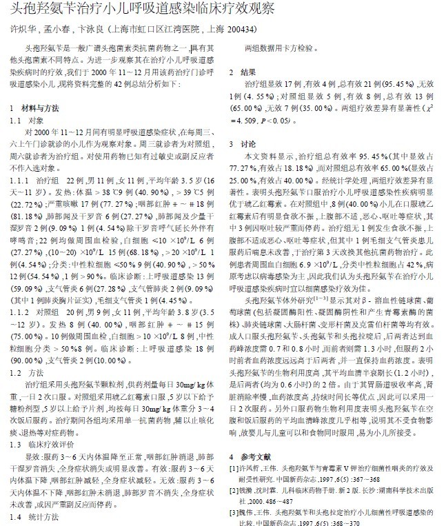 頭孢羥氨芐治療小兒呼吸道感染臨床療效觀察[2001]