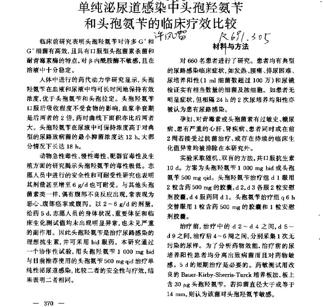 單純泌尿道感染中頭孢羥氨芐和頭孢氨芐的臨床療效比較